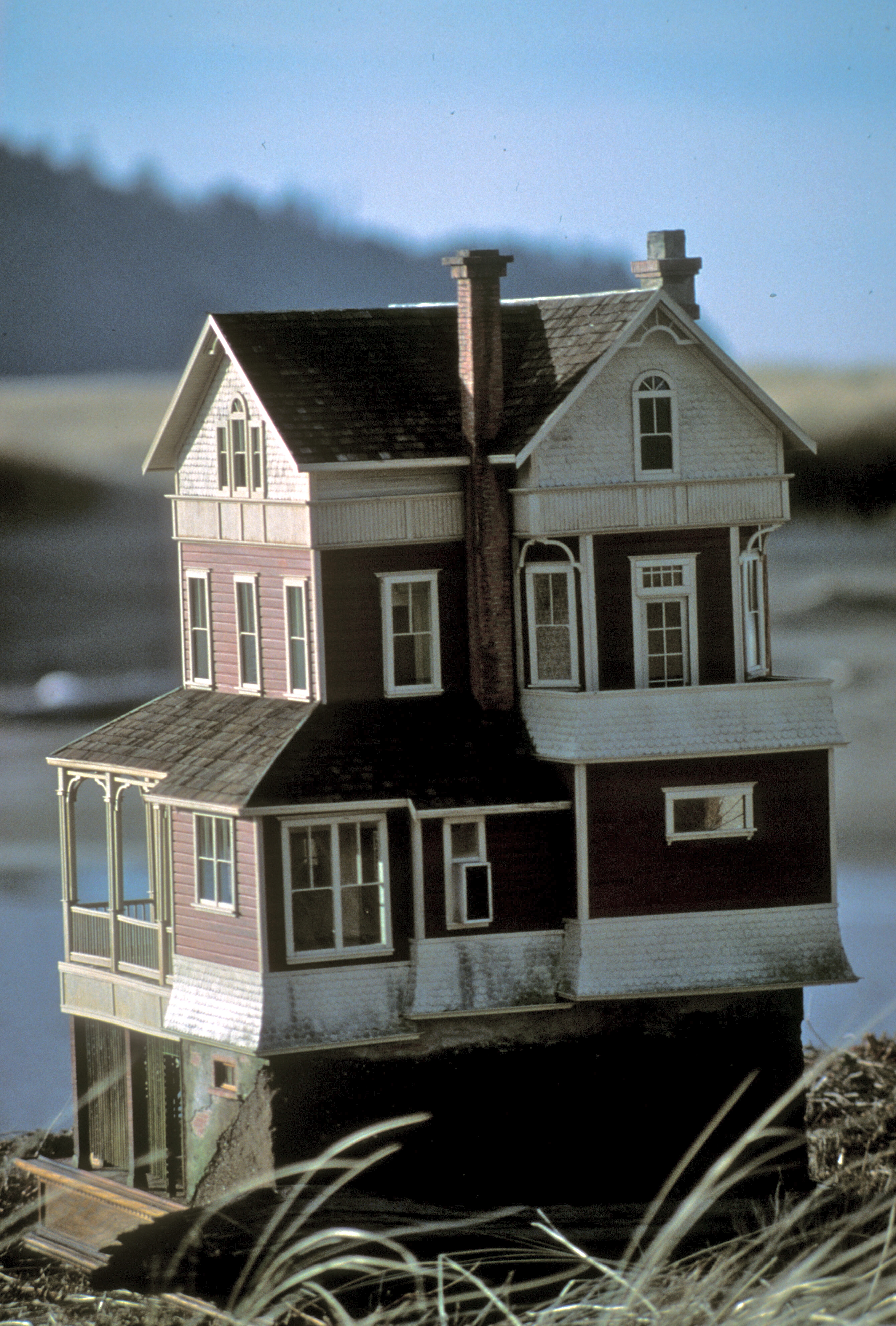 In 1979 the world tilted in our favor–Mork & Mindy came on the air, and Suzanne, a new customer, asked for an aged house. Not just a hint of age, but old. “Show all the bumps and wrinkles, I love them! And dirt is good!” Until this time we had added a few drips under the window ledges and down the chimney, broken out some lattice under the porch for where the dog found shade in summer, but it was all pretty subtle. We knew it was there, and our customers thought what they saw was charming, but no one actually asked for age. And, being dependent on our customers and reputation, we didn’t dare push the envelope too far. Wow! What a thrill it was to go ahead with what we’d been dying to do all along!