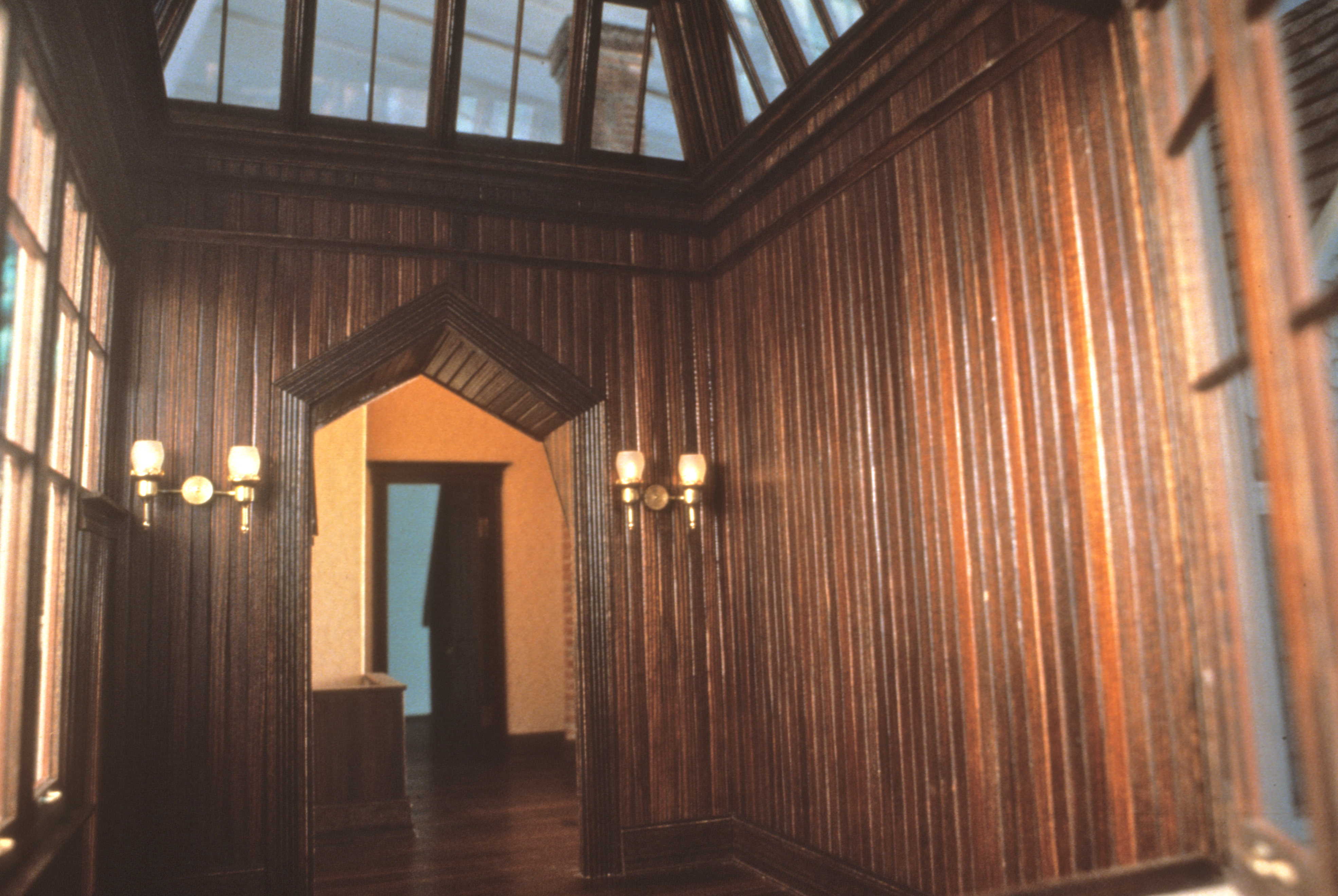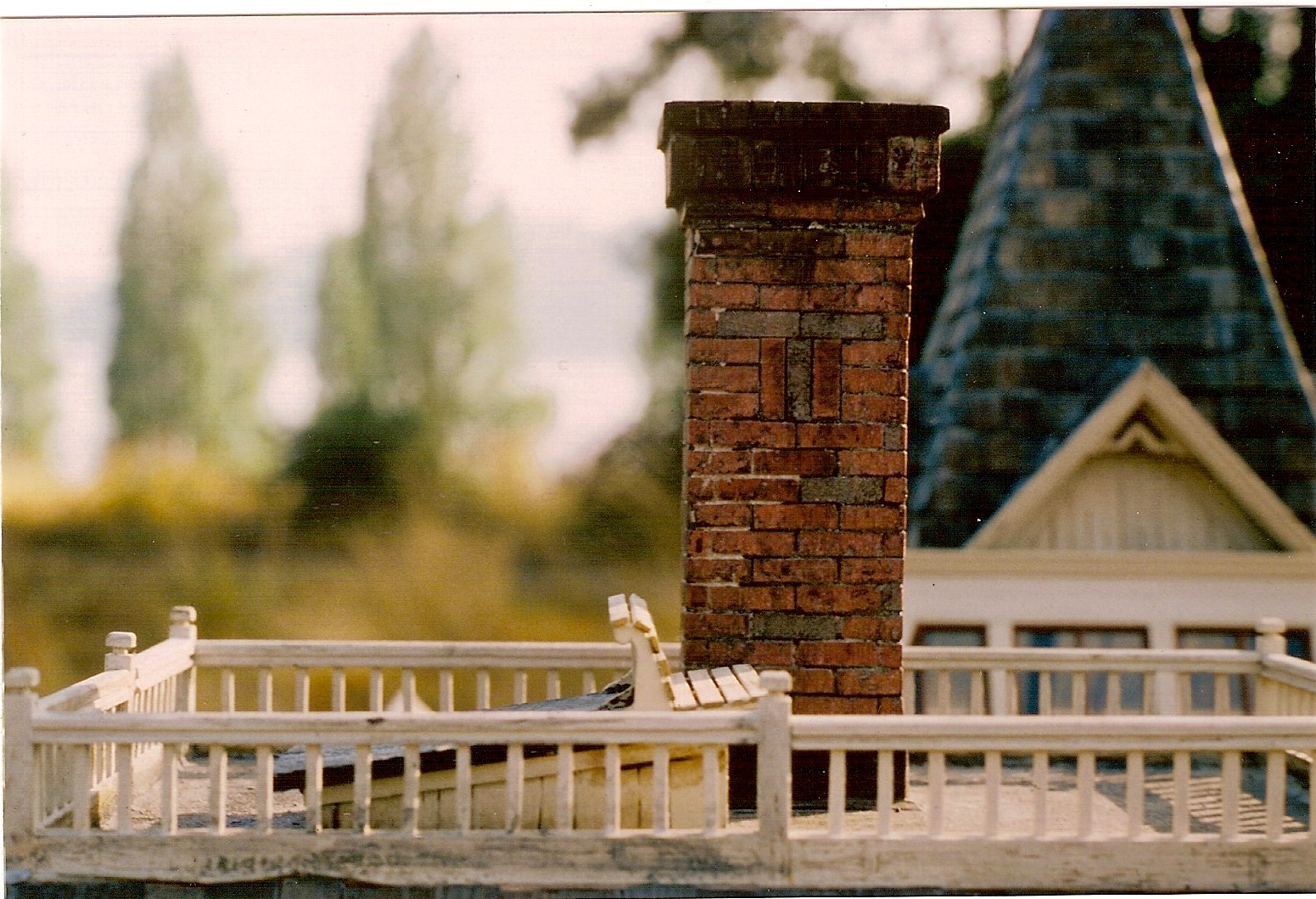 For this project Noel decided to vary our architectural menu by designing a house with a square tower. The tower enclosed a large, wainscoted room with tall windows that could be used for star-gazing. And for more romance, a hatch in the ceiling lead to a small widow’s walk on the roof. The flip side of the hatch held a bench from which to view the skies.
