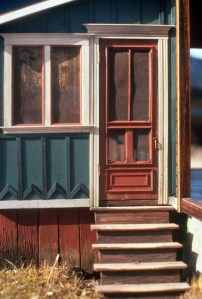 Plus, the house had the kind of back porch I imagined as the mythical Granny-inhabitant’s perfect, solitary retreat to cool off after a hot summer’s day of cooking and canning. As with many houses of the period, and locale, the back porch was an add-on, sided in board-and-batten rather than the more expensive horizontal drop-siding on the main structure. Back porches were always an excuse for a screen door, and a chance to try another kind of spring, so it would close with a convincing little slap, of the kind that made your mother yell, “How many times have I told you kids not to slam the screen door?!” Over the years we tried springs from old cigarette lighters, ballpoint pens, and then a little envelope of  3/64th” springs that turned up, either from a friend or from one of our foraging missions at the surplus warehouse in Seattle. They did pretty well, though I don’t know how they held up over time.