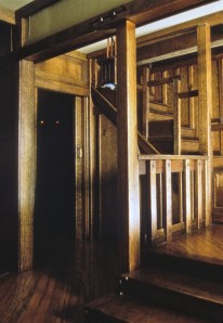 Each wall was designed and built like a piece of furniture. And, emulating the Greenes, the edges of every piece of stripwood were hand-sanded to a slight curve. The real trick was in getting the herringbone oak floor planks to line up through door ways and around corners. And, there were times we had to stop and re-figure, because a whole wall design would be out of balance with the rest of the room.