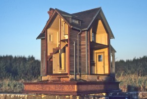There was a drawback in building two at once. The idea of ganging up our work to save time (twin houses presumably would go faster than two different designs) had never appealed to us. Our friend Jim Marcus believed in building what he called editions of houses—setting up jigs to use on 2, 3 or more of the same piece, and enjoying the process, but we weren’t cut out to be jig people. We did it with our chairs and garbage cans, and found the assembly line aspect bored us to tears. It just wasn’t worth the time saved. Plus, on a structure, we enjoyed the discovery of each piece of the puzzle, or at least how it fit in a new setting. Repeating ta puzzle once you know the answers is no fun. This time expediency won out over fun—we brushed off our Victorian vocabulary and started in.