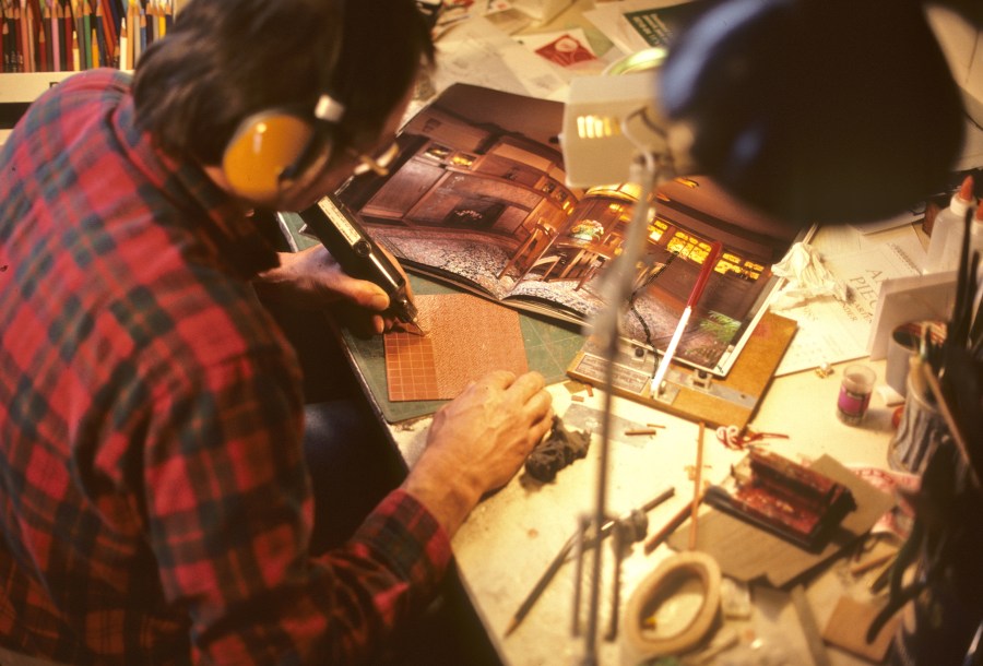 Texturing vinyl floor tiles to match the terra cotta tiles surrounding the house
